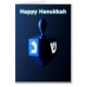 黒い夜のような背景に対して、モダニズム的でメタリックな、青い夢。ヘブライ語の文字のうち、2つのヘブライ語の文字は、明るく輝く修道女とシン。英語文字読の「ハッピーハヌカー」も青と白白熱[赤熱]光を放つで登場する。