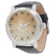 ベージュ色および茶色の色合いでそれにグランジな効果を与える具体的な質の上敷によって円のエア・ベントから作成される元のデザイン。 非常にスタイリッシュな、オリジナルの時計。