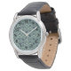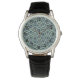 このメンズウォッチは、緑のフィールドの中に青の中に円または楕円を持つ行の円の幾何学的デザインを持っている。