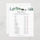 水の色の常緑樹、山やママとベビークマを特徴とするベビーシャワーゲームカード。シャワーおもしろいと交流する方法。ママがベビーに望む機能は?