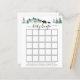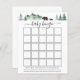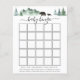 水の色の常緑樹、山やママとベビークマを特徴とする赤ちゃんシャワーのビンゴカード。おもしろいでシャワーを浴びながらプレゼントを開く方法。