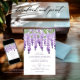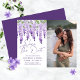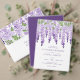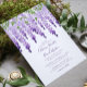 写真を保存する日付水彩薄紫結婚式保存日付招待状は水の色の藤の花をソフトな薄紫、ラベンダーと紫にエレガントし、白い背景に緑のを付け葉て、以下の日付情報を保存する。提供された文字ボックスの文字を編集し、写真を追加してパーソナライズお気に入りのする。©Evco Studio www.zazzle.com/store/evcostudioによる設計