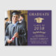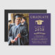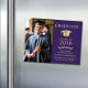 紫色エレガントの大学の卒業記念金ゴールド磁気アナウンスカードは、卒業生の写真、クラシック金ゴールドセリフタイポグラフィの卒業生の名前、および彼らの学校、名誉や将来の計画を含む専攻の。