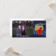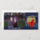 この写真カードは、霞んだ雲の前と満黄色の月の前に指の先端から魔法の塵の赤いドレスを着て街のスカイラインの上の夜空に浮かぶ赤いドレスに身を包んだ魔女のヴィンテージのイメージを持ってい来る。文字カスタマイズとテンプレートで自分の写真を追加。