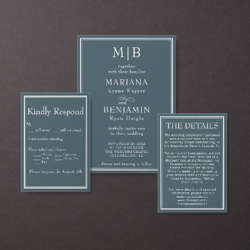 写真モダンミニマルBoho Blue結婚ズ 招待状
