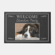 写真テンプレートモダン、ファミリー名、ウェルカムスクリプトと素朴なダークグレーのdoormat。素敵なグレーの書道フォント。最も美しい写真を追加し、名前を追加する。あなたは簡単に文字を変更できる。