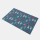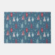 冬のクリスマスパターン。青い背景に赤い緑のクリスマスツリー、クリスマスボールを様式化。