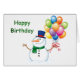 文字と風船を持つかわいい冬の誕生日雪だるま...ハッピーバースデー
