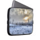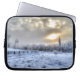 冬の雪が降る日の出の農場 ラップトップスリーブ