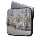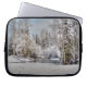 冬の雪が降る日の出の農場 ラップトップスリーブ