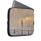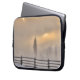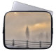 冬の雪が降る日の出の農場 ラップトップスリーブ