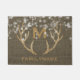 冬の雪片の(雄ジカの)枝角の素朴なバーラップのモノグラム ドアマット
