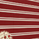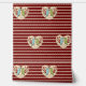 ダークレッドとクリーム色の紙を背景に、ロビンの卵ブルーとアボカドの緑のロブバードのオリジナルデザインとレモン色の黄色のハートに赤いホリーベリーを囲んで立つレモンイエローのストライプ。