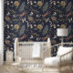 この冬をテーマにした壁エレガント紙でインテリアを高める。深い海軍の背景にピネコン、常緑の枝、季節の葉の洗練されたデザインを備え、どの部屋にも暖かく素朴な魅力をもたらす。休日やその後のフェスティバル、居心地の良スタイリッシュい、雰囲気を作り出すのに最適。