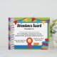 完璧または卓越した出席賞,カスタマイズ可能なキッズスクールアワード証明書手紙サイズ8.5"x11"このカラフル賞を使用して、任意のコース、学校またはプログラムで良く行われた仕事のために学生に報酬を与える。本のスタック、バナーフラグと赤いリボンシールを使用したカスタムデザイン。数学素晴らし、科学、読の、完璧な優れた出席率、アスリートまたは任意の使用のためのスポーツチームの努力の出席実績のための賞として就学前、就学前、幼稚園、小学校に使用する!このカスタマイズ可能な証明書を使用して、学生とスタッフの努力に関するプライドと熱意を示パーソナライズされたしなさい。自分の文字をオンラインで追加し、式のために作られたカスタム証明書を注文する。後で離れ署名を追加する際には空白の、署名の領域を使用するか、名前とタイトルを入力して、上に署名を追加する。Honoreeの名前を入力するか、行を入力し空白のて後で手離れの名前を追加したり印刷した名前を追加することができます。