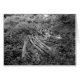 木の切り株の白黒の写真が下の成長の杭に並んだカード。..