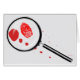 指のプリントと血液(ばちゃばちゃ)跳ねるを表す拡大鏡。
