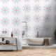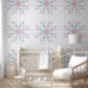 刺繍を模した縫い目で作られた花咲く自然な模様。部屋の宇宙を縮める印象を避けるために、ピンク、緑、青、黄色の色合いの甘い色。美しいエレガントと。