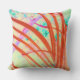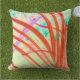 このモダン屋外・屋内装飾用クッションのアートワークは、風の中で曲がるヤシの葉のZoeSPEAKによるオリジナル写真から作成された。この抽象概念の中で、正面は朱色の赤の色合いで、柔らかい焦点の背景は松の木で、緑とラベンダーの形で黄色になっている。