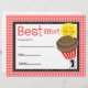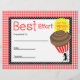 アリの大きなチョコ最高のコレートカップケーキの紙と賞のイラストレーションを取り上げ運た努力に対する学生の報酬赤と白証明書。背景は赤いギンガム。白い水玉模様で黒いトリム。