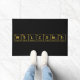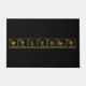 元素、原子番号、重み付き周期表ユニークスタイルの書「歓迎」を掲げた化学フォーマットの紹介。科学愛好家や化学愛好家に最適な形式は、科学のゲストを歓迎しながら、あらゆるエントリーに知性と魅力のtouchを追加しゃれているする。黒い黒地の黄金の言葉。