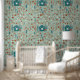 森の生インスパイア物とセージな緑の背景のカッコウ時計とのスカンジイの森林模様。オリジナルアートby Nic Squirrell.