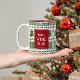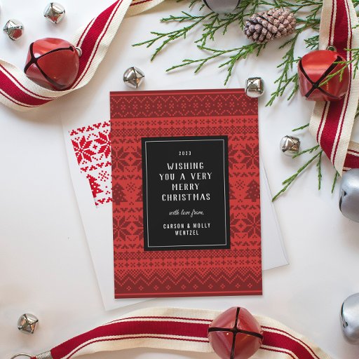 クラシックのクリスマスカラーの白の赤の上に奇妙な、大きな北欧のセータースタイルのピクセルのスノーフレークを特色とし、その逆に繰り返しパターンのクリスマスカラーで今季の休暇を家に持って帰る。