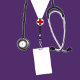紫の病院用スクラブをデザインした、創造的な医師の卒業パーティー記念品ボックス。テキストを編集して医師にカスタマイズできます。