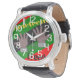 この男性用ウォッチは、赤、黄、緑、黒の線の背景を持つ鎖を切り離した12番目のデザインの手を持つ。