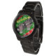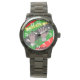 赤、黄、緑、黒の線の背景を持つ鎖を切り裂いた手の12番目のデザインを持つ女性時計。