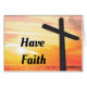 十字架を正面に付けた信仰のカードを持つ。内空白の部ご注文の前に自分の個人的なメッセージを入力する準備ができ書ます。前面に十字架が付いた美しいオレンジ色の日の出。