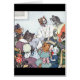 午後のお茶を食べている猫の女性および子供のかわいいヴィンテージのイラストレーション