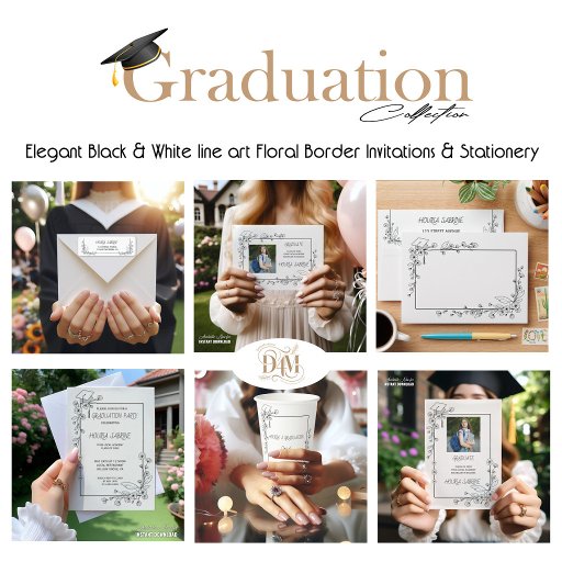 Elegant Graduation Black and white Floral Borderデザイン: Houria Sabrine