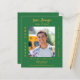 写真、名前、学校名、クラス、パーティー詳細をカスタマイズして追加する。森の緑の背景色、黄金の文字。1枚= 1枚の招待状を印刷したエッジからエッジ