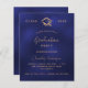 卒業モダン会エレガントの招待状。ネイビーブルーの背景、黄金の文字。青い色が不均一だ。名前、年、および詳細のパーソナライズおよび追加。