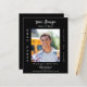 写真、名前、学校名、クラス、パーティー詳細をカスタマイズして追加する。黒い背景、白い文字。1枚= 1枚の招待状を印刷したエッジからエッジ