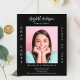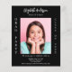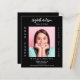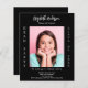 写真、名前、学校名、クラス、パーティー詳細をカスタマイズして追加する。黒い背景、白い文字。1枚= 1枚の招待状を印刷したエッジからエッジ