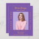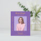 写真、名前、学校名、クラス、パーティー詳細をカスタマイズして追加する。紫、ラベンダーの背景色、黄金の文字。1枚= 1枚の招待状を印刷したエッジからエッジ