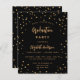 彼と彼女の両方の卒業式パーティーのための華やかな招待状。黒い背景飾に金ゴールド星。名前とパーティー・詳細のパーソナライズおよび追加文字卒業と名前は手で書いた書スタイルスクリプトでモダンある。金色の文字。バック:黒い背景と黄金の星。1枚= 1枚の招待状を印刷したエッジからエッジ