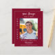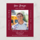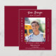 写真、名前、学校名、クラス、パーティー詳細をカスタマイズして追加する。ブルゴーニュの背景色、白い文字。1枚= 1枚の招待状を印刷したエッジからエッジ