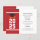 上記の「パーソナライズ」ボタンを使用して黒いタイポグラフィ卒業パーティーの招待と共にはっきりしたモダン赤と白、卒業の年、名前、および日付の付いた会場の詳細を追加。シンプルレタリング付きスクロールと卒業キャップを特徴とする卒業式パモダンーティ招待状。