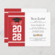 上記の「パーソナライズ」ボタンを使用して、黒いタイポグラフィ卒業パーティの招待と共にはっきりしたモダン赤と白、卒業の年、名前、および日付と会場の詳細を追加する