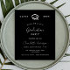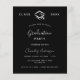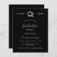卒業モダン会エレガントの招待状。黒い背景、白い文字。名前、年、および詳細のパーソナライズおよび追加。
