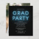 Grad Photo Blue Neon Sign Graduation Party白い文字と写真人気があるを使って簡単に変更できる招待状。日付、パーティー詳細を変更し、写真を裏側に追加するクリックには「パーソナライズ」ボタンを押す