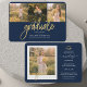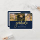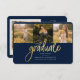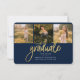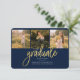 卒業式4 Photo Collage Script Blue金ゴールド発表カード。簡単にカスタマイズこれは、文字を変更し、あなたの写真に置き換える。今年モダンの卒業を発表するトレンディーな方法!