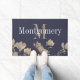 かわいらしい南マグノリアが付いている豪華で、エレガントな真夜中の濃紺の玄関マットおよび姓とあなたの名前入りなモノグラムの手紙。