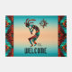 この"種類ユニークの1つ"の南西ココペルDoormatをパーソナライズ! ターコイズの太陽の下に遊フルートと踊りを備え、オレンジ色の夕日の背景…ターコイズの南西に囲ま縁どれ、オレンジとブラック!
