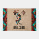 この"種類ユニークの1つ"の南西ココペルDoormatをパーソナライズ! 太陽の下で太陽の遊下にフルートと踊りを持つタンバックグラウンド…ターコイズ、オレンジとブラックの南西に囲ま縁どれ!