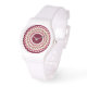 明るい円形のシェブロン模様が互いを取り囲み、このユニークとカラフル時計。色はマルーンの赤、黄褐色、白で、中央は赤焦げ無地の色である。このパターンはフェスティバル南西スタイルを持つ。