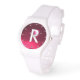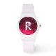 印刷明るい赤紫色ピンクルビージェムストーンモノグラム 腕時計